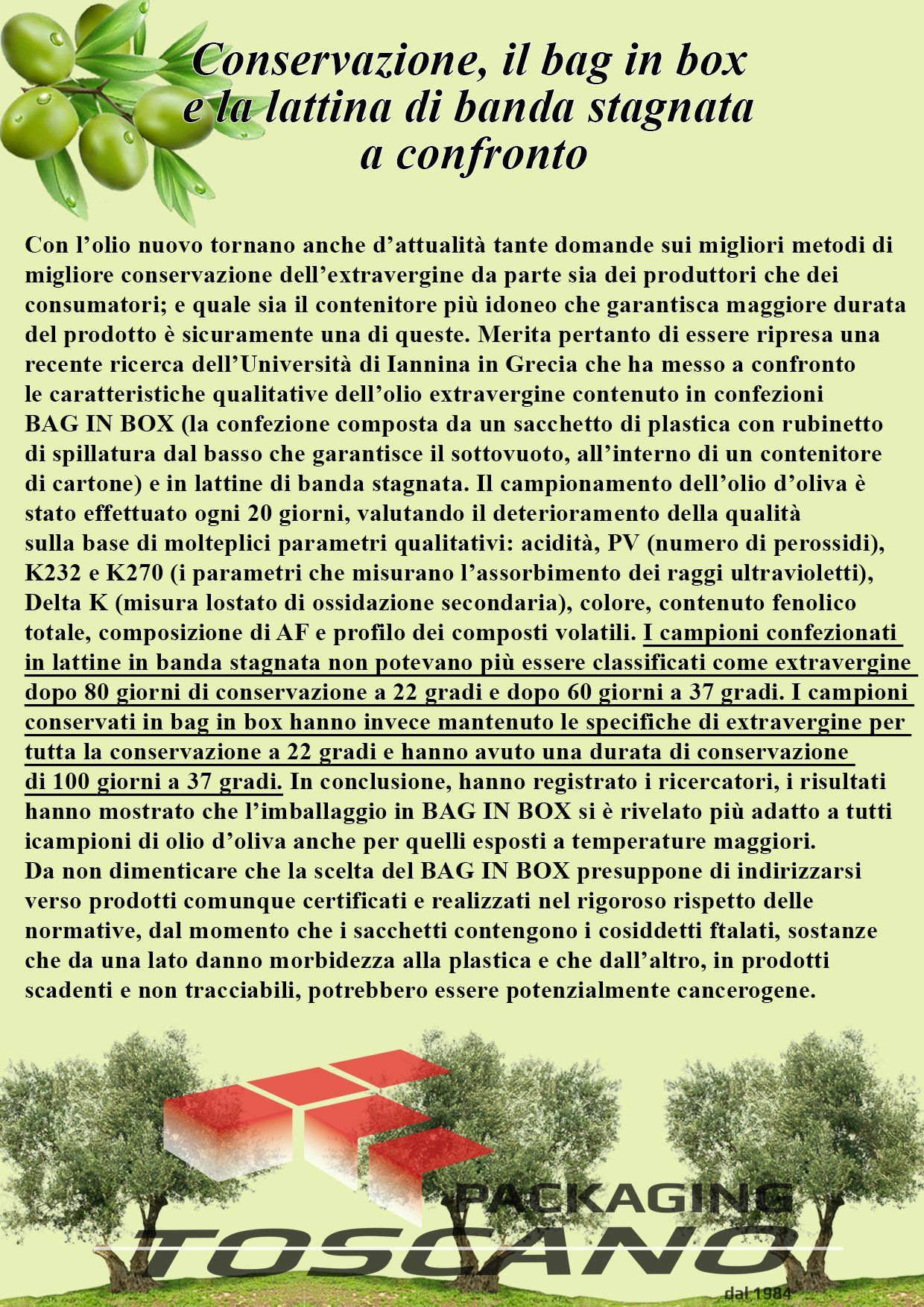 The Bag-in-Box® with bag and tap allows you to store your liquids,preserving its taste and organoleptic qualitiesfor a long time after opening. The operation of the Bag-in-box® is simple: the internal bag retracts during dispensing, creating a vacuum and is developed to prevent contact between the liquid and atmospheric agents such asair, temperature and light.