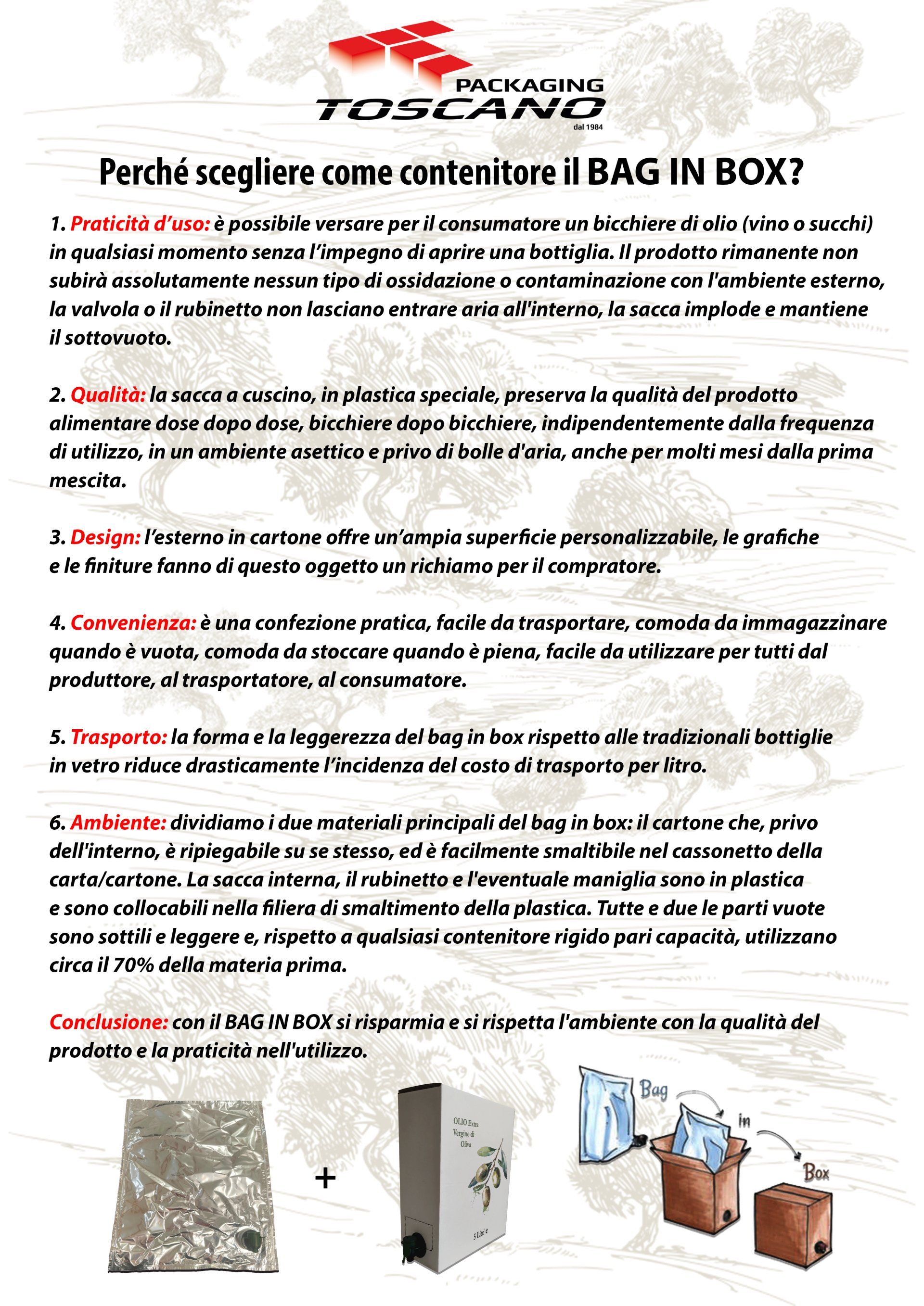 Le Bag-in-Box® avec sac et robinet vous permet de stocker vos liquides,préserver ses qualités gustatives et organoleptiqueslongtemps après l'ouverture. Le fonctionnement du Bag-in-box® est simple : le sac interne se rétracte lors de la distribution, créant un vide et est développé pour éviter tout contact entre le liquide et les agents atmosphériques tels queair, température et lumière.